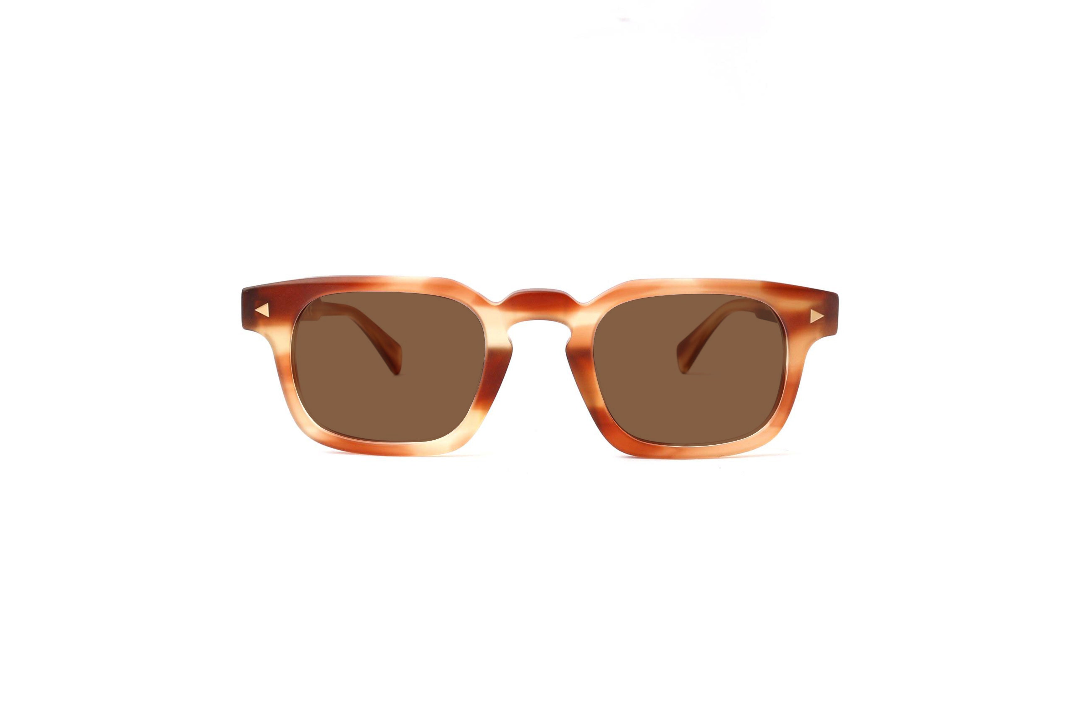 Occhiali da sole in acetato di cellulosa pantografata , materiale solido al tatto e nello stesso tempo di raffinata presentazione visiva . La montatura degli occhiali viene ricavata da lastre di acetato di cellulosa stagionate nel tempo e burattate per renderle lucide e brillanti. Materiale generalmente usato dalle migliori griffe del settore.